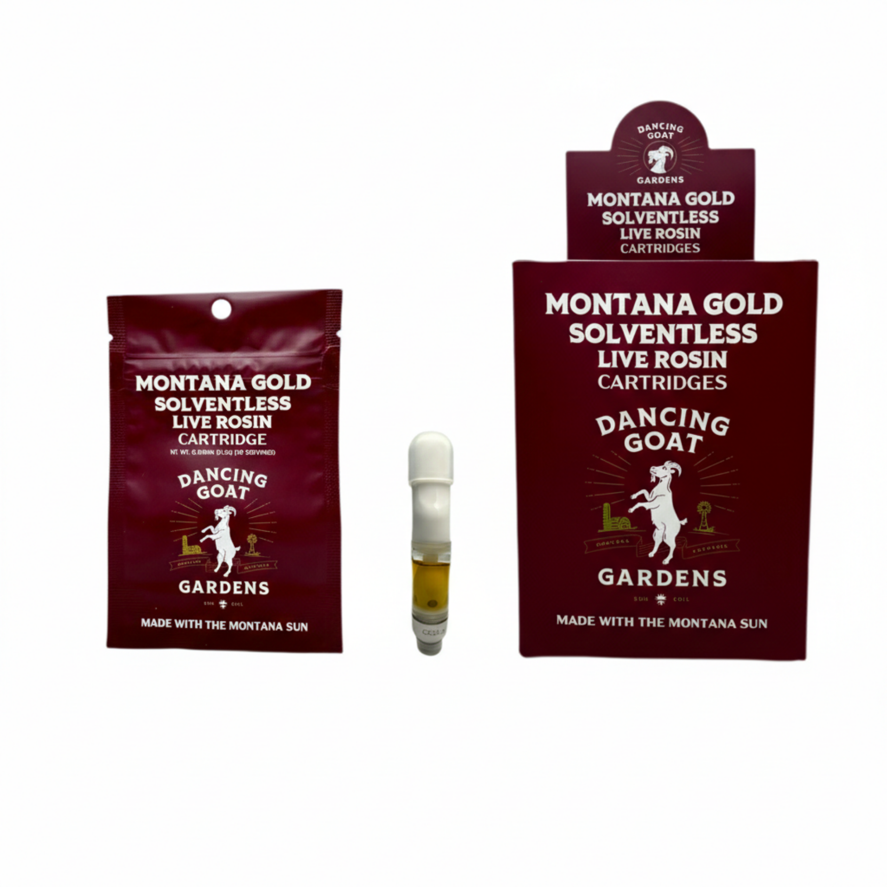 The DGG Montana Gold solventless live cartridge is born from living soil, mountain sun, and the hands of Montana farmers who believe in doing things the right way. At Dancing Goat Gardens, they grow their cannabis using regenerative methods that feed the earth as much as the plants. Every plant is powered by real Montana sunlight and nourished by thriving soil teeming with life. From this harvest, they carefully craft solventless live rosin that captures the pure essence of the plant — and the place it comes from.