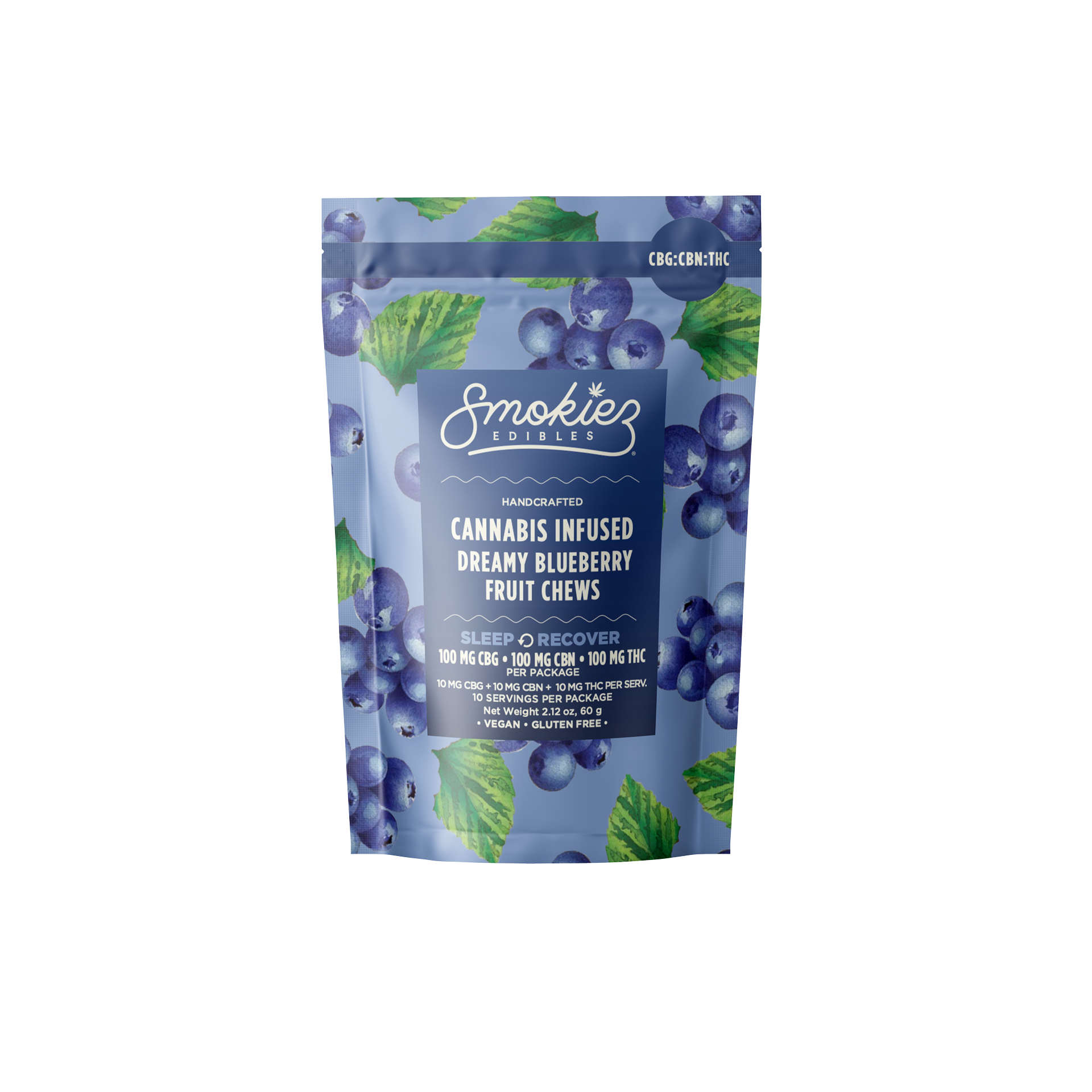 Smokiez 10pk – Dreamy Blueberry – (1:1:1) Sleep Recovery 100mg CBG : CBN:THC